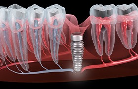 Most traditional tooth replacements only bring back the crown (top) of a tooth, but instead, dental implants rebuild both the root and the crown. The implant itself is a small titanium post that is placed directly into the jawbone by our trusted specialist. Then, it fuses to the surrounding bone and tissue in a process called osseointegration. From there, a metal abutment is affixed to the implant, which is used to secure a custom-made dental crown. Multiple implants can also hold a dental bridge or denture.