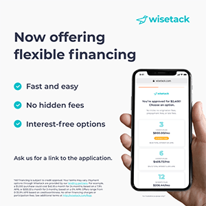 *All financing is subject to credit approval. Your terms may vary. Payment options through Wisetack are provided by our lending partners. For example, a $1,000 purchase could cost $45.18 a month for 24 months, based on a 7.9% APR, or $333.33 a month for 3 months, based on a 0% APR. Offers range from 0-35.9% APR based on creditworthiness. No other financing charges or participation fees. See additional terms at http://wisetack.com/faqs.